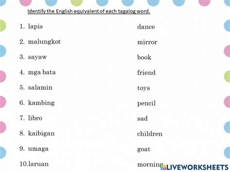 English Tagalog worksheets are a great way to learn and practice the language. They provide a structure and organization to the language-learning process, and help students stay on track and focused. English Tagalog worksheets are also a great way to check your understanding of the language, as they often include multiple-choice and fill-in-the-blank questions.